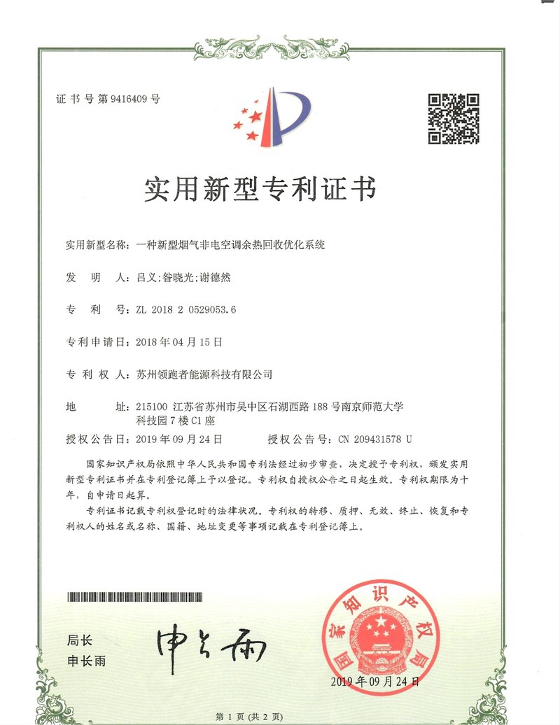 查看更多>2024年4月30日,蘇州領(lǐng)跑者能源科技有限公司的一項(xiàng)余熱回收技術(shù)——“基于煙氣換熱器的余熱回收制冷熱技術(shù)”入選《國(guó)家工業(yè)和信息...